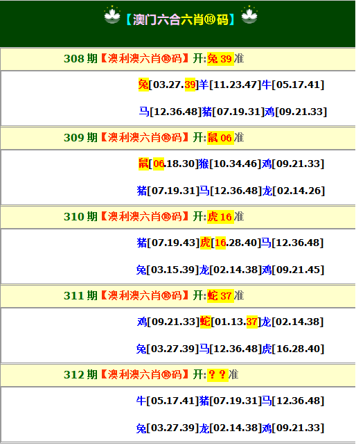309期-必中四肖 |